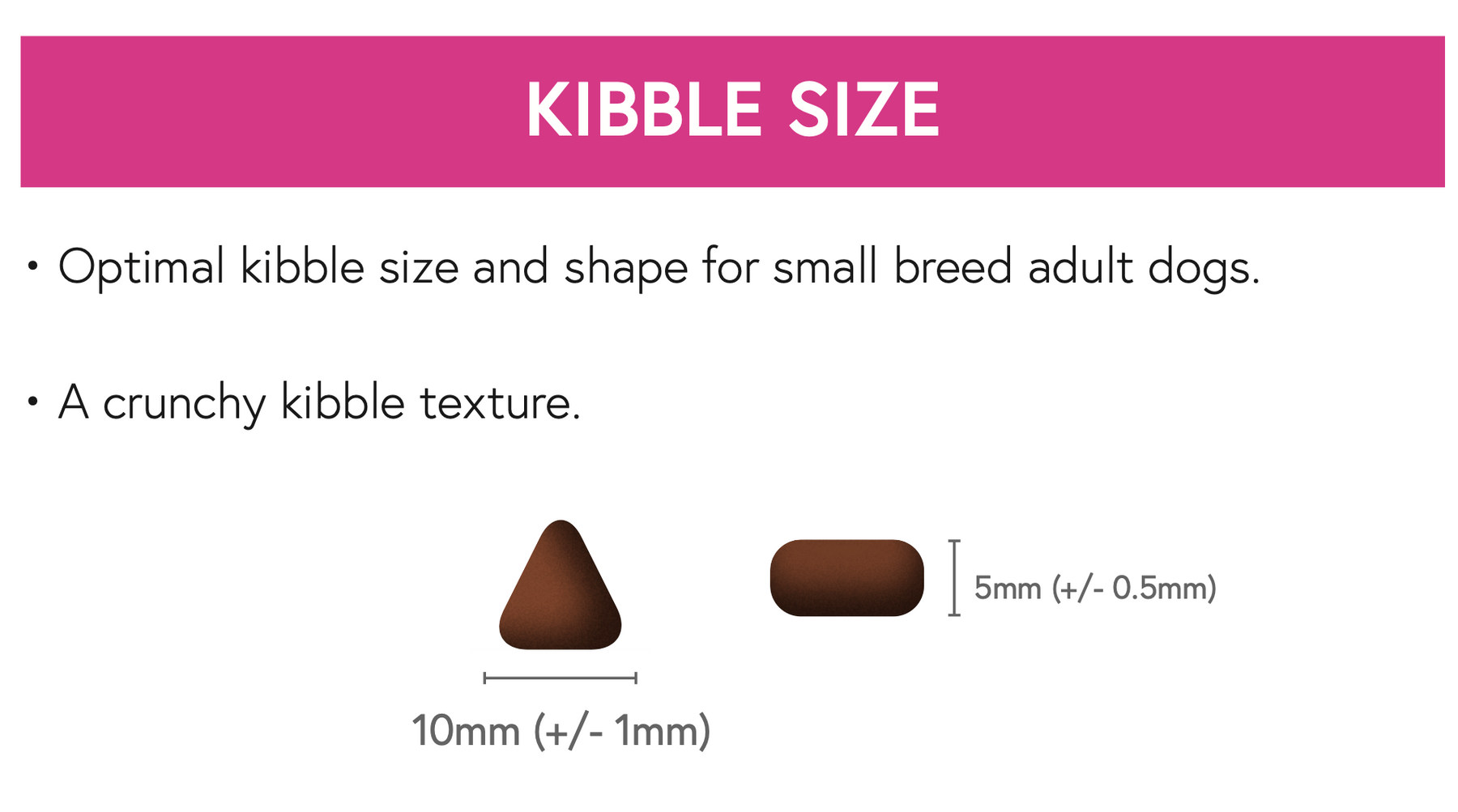 • Optimal kibble size and shape for puppies. • A crunchy kibble texture.