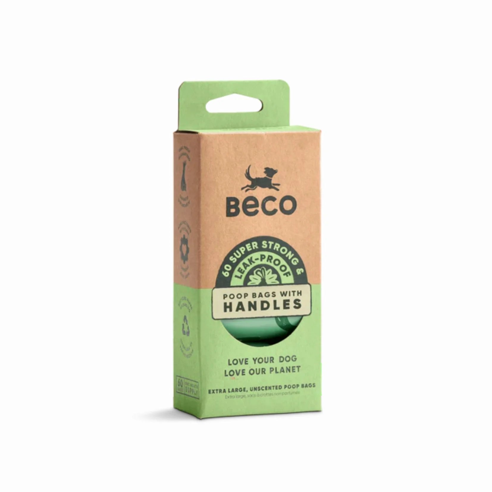 Beco poop bags packaging with a cardboard and blue design on a white background