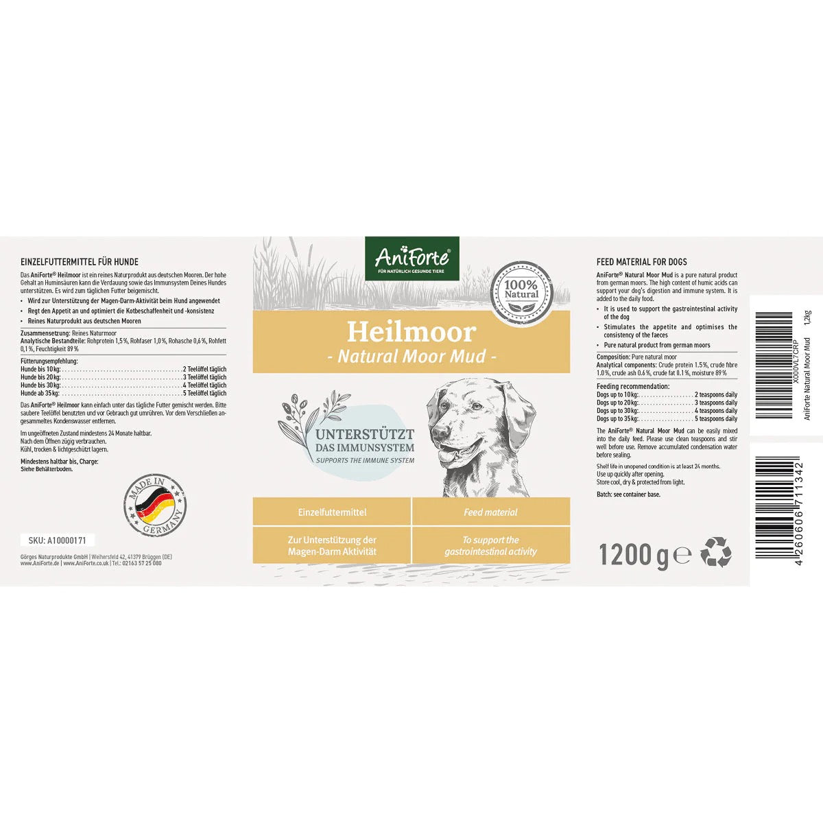 AniForte® Natural Moor Mud is a natural product from the oldest moor spa in Bavaria. Processed according to the highest quality standards, it can contribute to the well-being of your four-legged friend. Due to its earthy consistency and its natural aroma, it's being very well accepted by dogs. Our customers also report very good tolerance, especially with sensitive pets.