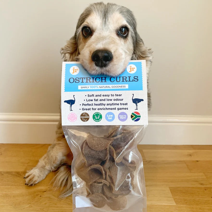 Ostrich Meat, Carrots, Peas, Ostrich Fat, Glycerine, Potato Starch, Natural Salts, Parsley, Red Seaweed Extract.