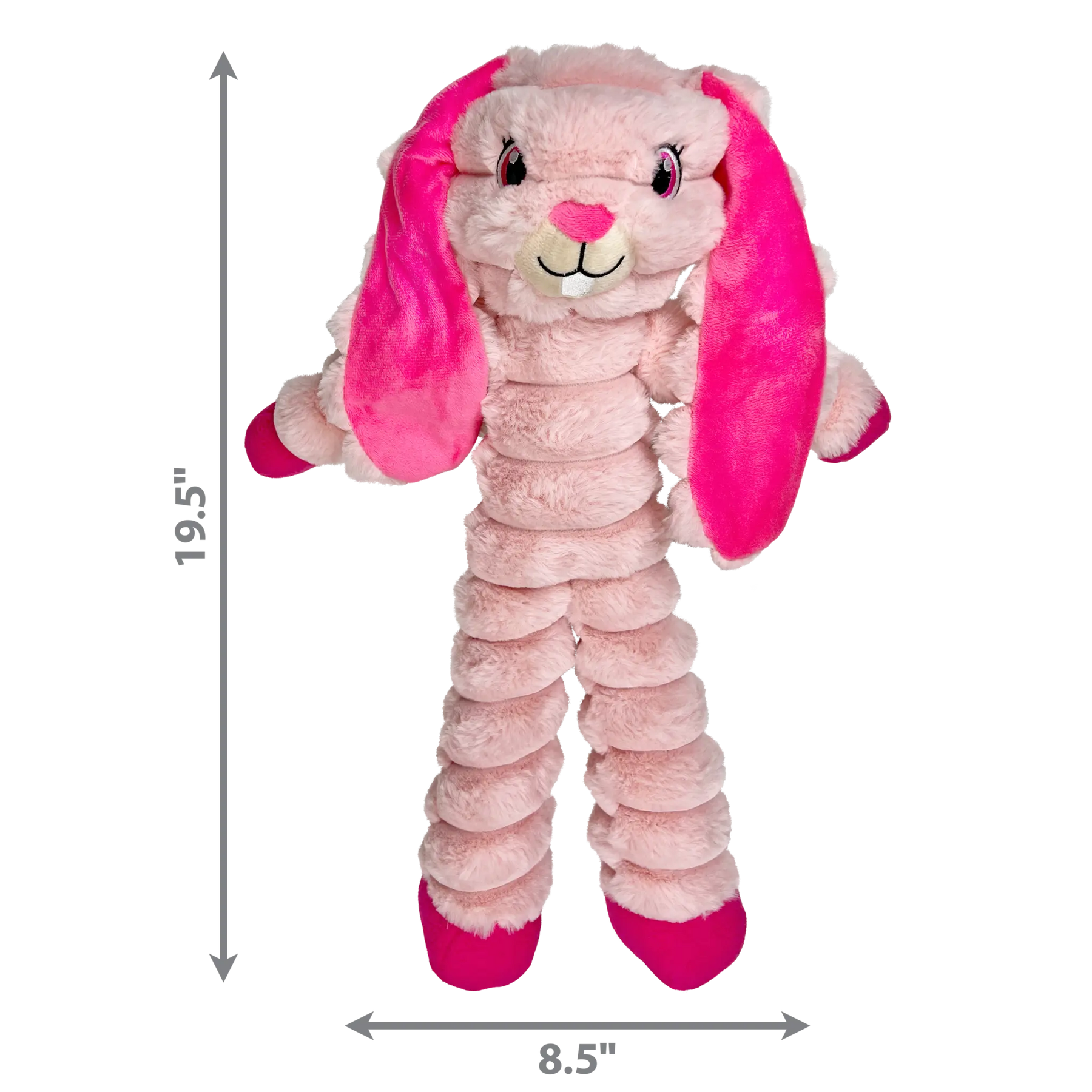 KONG Shakers Crumples’ jumbo size delivers extra-large fun with a long, floppy body great for satisfying shaking, tugging and fetching instincts. A unique grunting squeaker in the body, crackly arms and squeaky feet keep dogs playing. Irresistibly soft plush makes them great snuggle buddies. Thin arms and legs let dogs big and small grab on and enjoy.