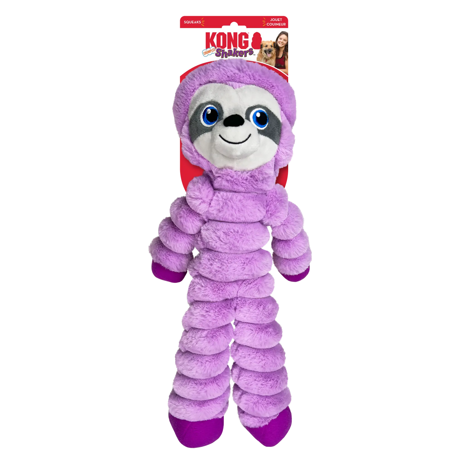 KONG Shakers Crumples’ jumbo size Sloth delivers extra-large fun with a long, floppy body great for satisfying shaking, tugging and fetching instincts. A unique grunting squeaker in the body, crackly arms and squeaky feet keep dogs playing. Irresistibly soft plush makes them great snuggle buddies. Thin arms and legs let dogs big and small grab on and enjoy.